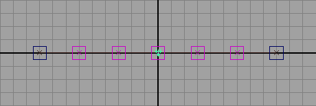 先创建 7 个立方体每个之间间隔 3 个单位 .