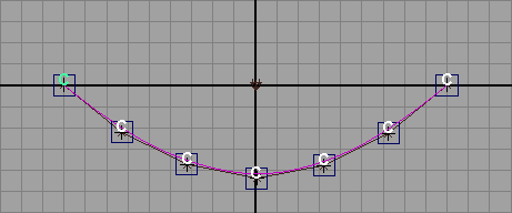 打开 7 个立方体的 selection-handles, 并创建 CV 曲线 , 每个 cv 都 snap 到 selection handle 上 , 这样就有了 7 个 cv 点 .