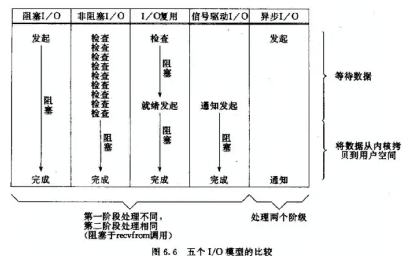 两者的区别就在于synchronous IO做”IO operation”的时候会将process阻塞。按照这个定义,之前所述的blocking IO,non-blocking IO,IO multiplexing都属于synchronous IO。有人可能会说,non-blocking IO并没有被block啊。这里有个非常“狡猾”的地方,定义中所指的”IO operation”是指真实的IO操作,就是例子中的recvfrom这个system call。non-blocking IO在执行recvfrom这个system call的时候,如果kernel的数据没有准备好,这时候不会block进程。但是,当kernel中数据准备好的时候,recvfrom会将数据从kernel拷贝到用户内存中,这个时候进程是被block了,在这段时间内,进程是被block的。而asynchronous IO则不一样,当进程发起IO 操作之后,就直接返回再也不理睬了,直到kernel发送一个信号,告诉进程说IO完成。在这整个过程中,进程完全没有被block。