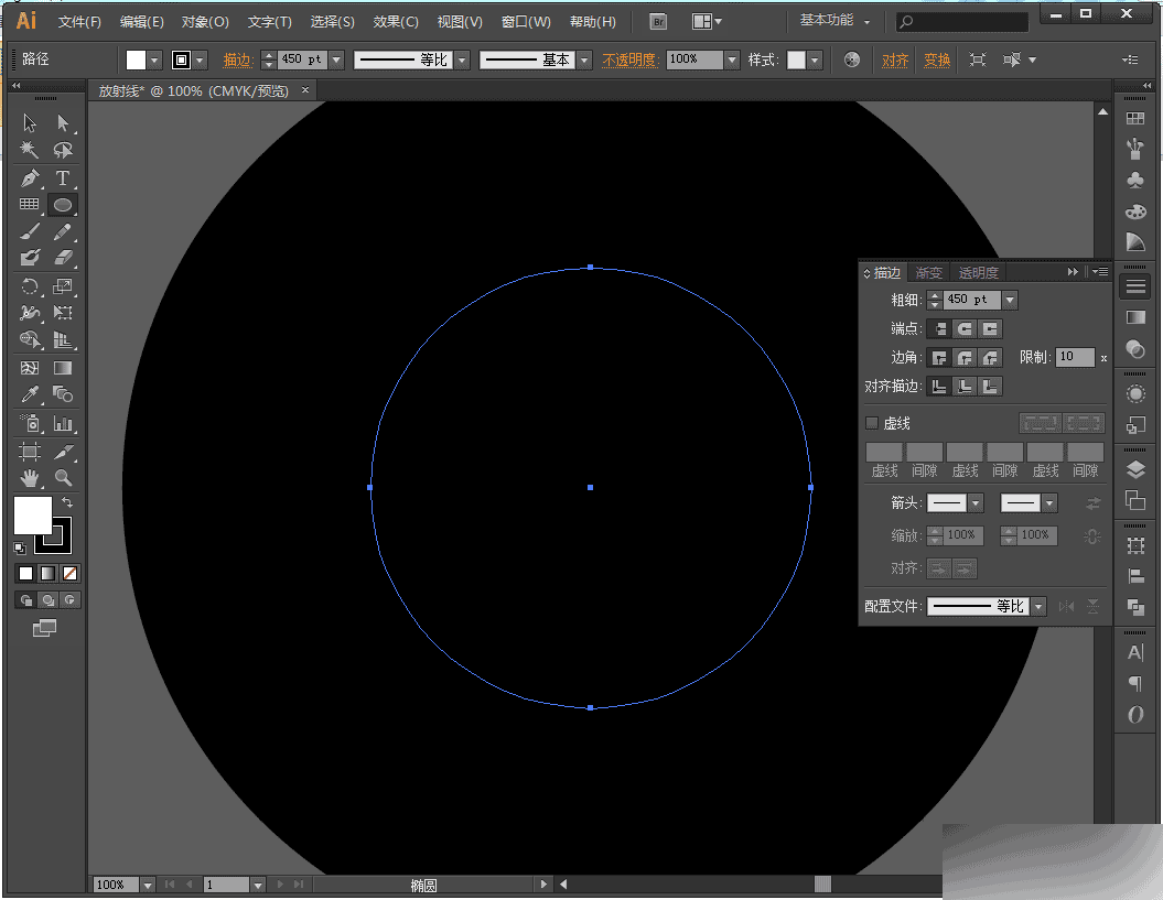 【step03】给圆形添加描边,在描边选项卡中填写粗细,要足够盖住画板。