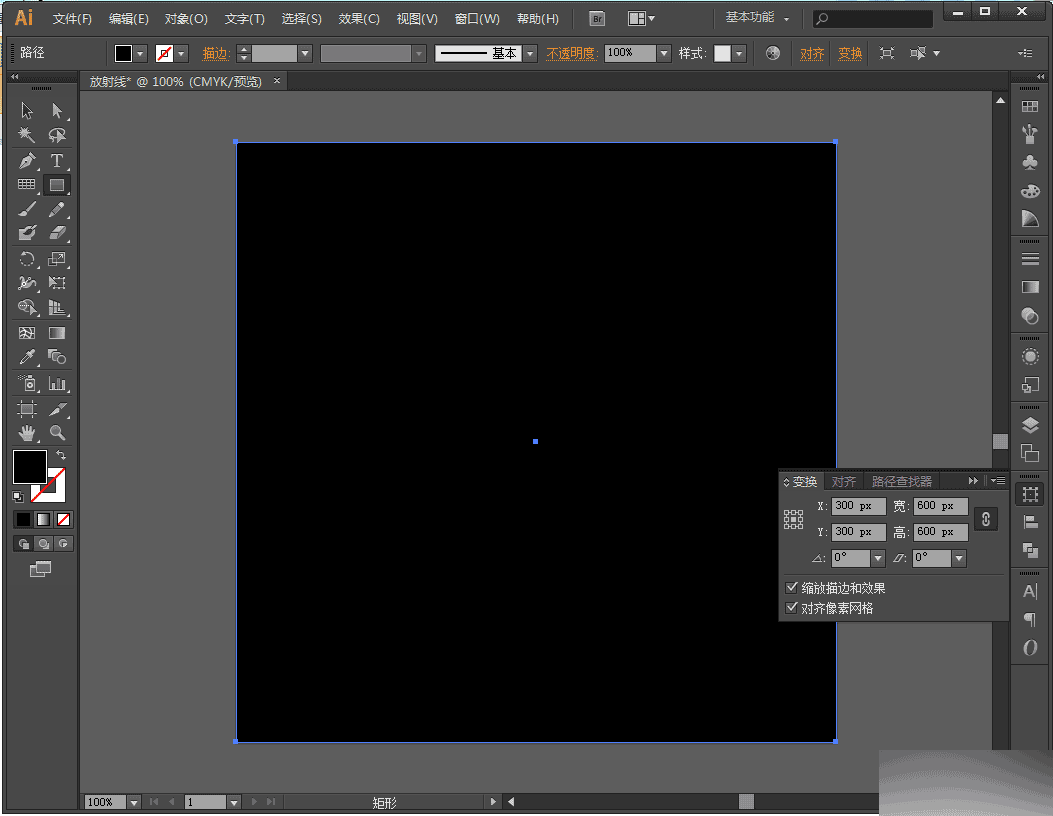 【step07】隐藏放射线,选择矩形工具,画一个和画板一样大的矩形,可以在变换选项卡里设置。