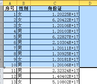 在网上搜了一下发现,原来excel看你数字列超过12位就会显示科学计数。而身份证一般都是18位所以显示这样。