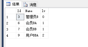 select Id,Name,0 lv -- 查询出“根节点”,即指定的起始节点