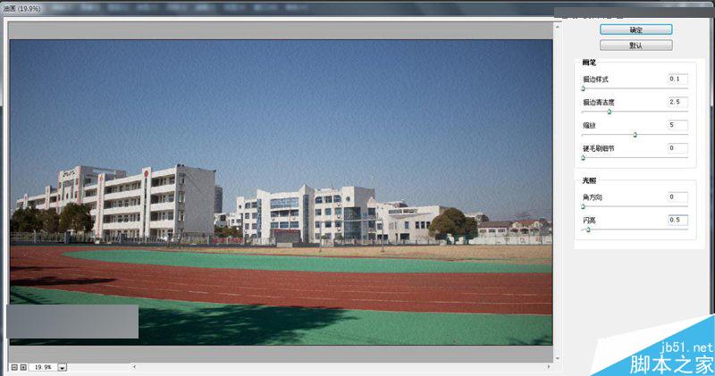 选择【滤镜】—【油画】,调整数值:0.1、2.5、5、0、0、0.5。使画面稍微带些油画效果。
