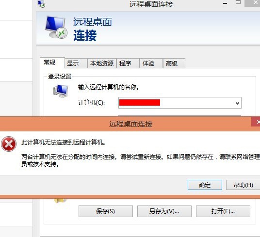 在使用远程桌面连接的时候发生了连接失败的问题,每次连接都会弹出“两台计算机无法在分配的时间内连接”的问题,在此之前连接远程桌面一直都没出问题,直到某天突然就弹出了这个错误无法连接。