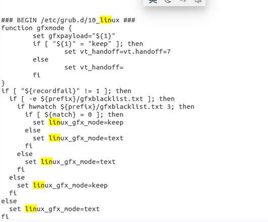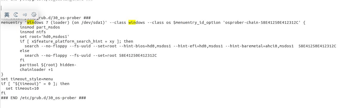 再输入sudo gedit grub.cfg,打开grub.cfg文件后找到windows引导,如下图所示,把他剪切出来