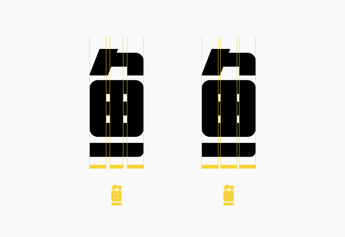 针对这一问题调整部分笔画位置,使得结构空间区域均匀合理;另外把转角由之前的直角变为圆角,亲和力更足,‘语’字最后做了一个负空间的小图形整体看起来会多一些趣味。