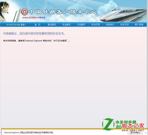 我用12306铁道部订票网站订票的时候,总是提示证书错误,为什么会这么提示呢?