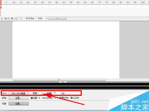 启动flash8,新建一个大小为600*600,背景颜色为白色,帧频为12fps的文档。