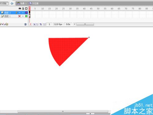 打开隐藏图层1,选择图层1的60帧处,插入关键帧,选择图层2的60帧处插入帧。选择图层1的第一帧创建传统补间动画,并在属性面板上设旋转为顺时针。