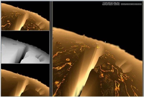 我创建了一个很大的圆柱体并且给它指定贴图来给画面增加一些深度.在后面的合成中我使用了它多次(图20)。
