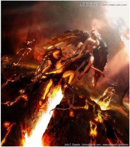 在做之后一定要先画出草图来!我只是以我脑海中一些关于天使,魔鬼或是地狱的一些比较模糊的印象来开始这项工作的.相信我!如果不这样做,你做完的东西很可能就是一件垃圾作品.因为你在创建物体的过程当中你都不知道哪一个物体应该放置在哪里,所以一定一定要记住在开始做之前,一定先在纸上画一些草图来思考你在3D里面应该怎样去创建。