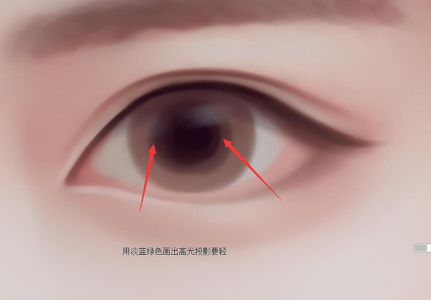2、眼珠子中间的颜色选择眼线中间最深的颜色用水彩画,最开始不用非常使劲,擦出来淡棕色,然后依次加深。