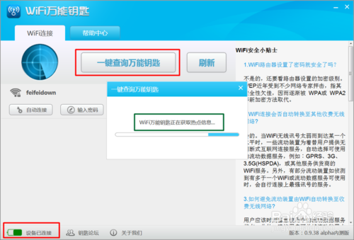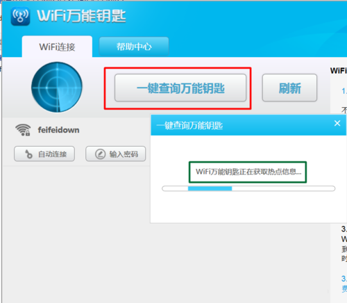 当以上方法无法成功连接到“wifi热点”时,则我们就需要通过“一键查询万能钥匙”按钮来实现更高级的破解操作。