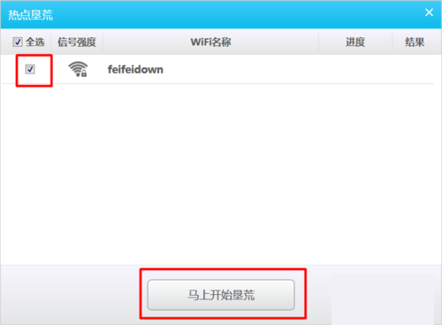 接着在弹出的窗口中,勾选要进行破解的“wifi热点”,点击“开始垦荒”按钮进行深度破解。
