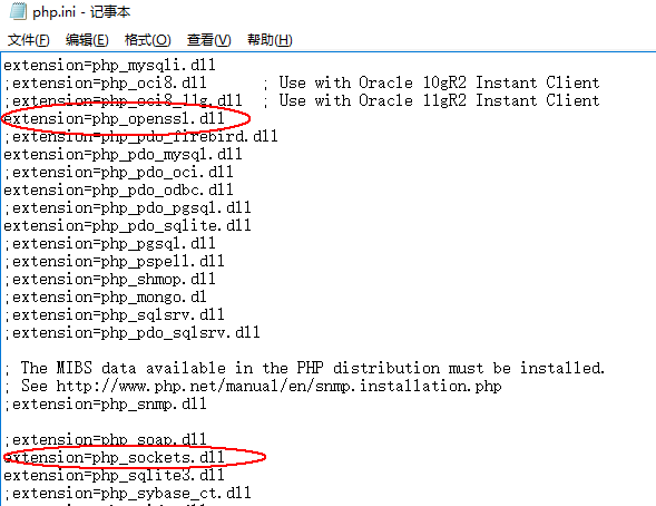 如未开启,到PHP安装目录找到php.ini中开启两个扩展支持。
