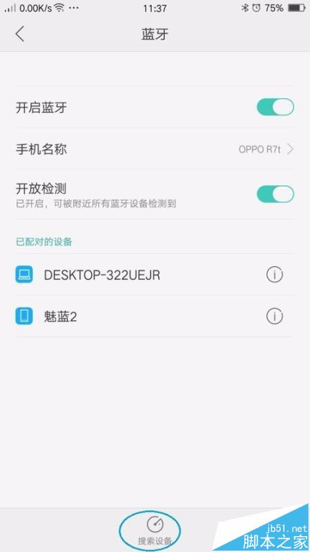 4、此时我们点击手机蓝牙功能底部的“搜索设备”按钮: