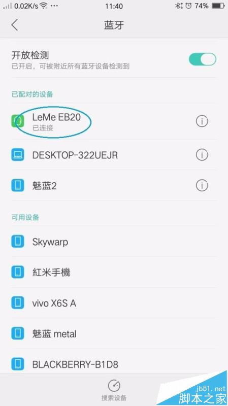 5、根据环境的影响,稍等些时候能搜索到“LeMe EB20”蓝牙耳机:
