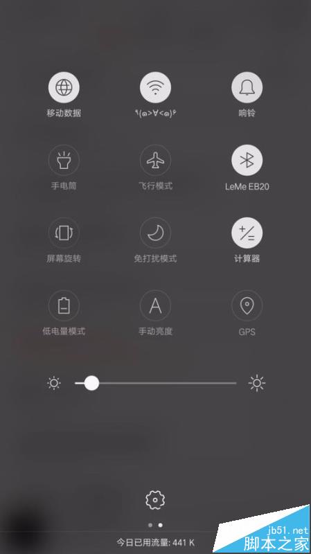 10、我们切换到手机顶部的通知栏,也可以看到蓝牙开关处显示已经连接的乐视蓝牙耳机: