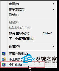 在Win7系统桌面空白处点击鼠标右键,选择”个性化“。