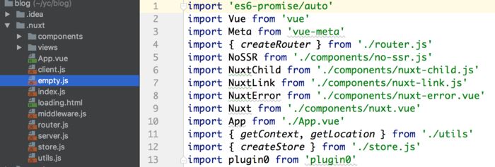 虽然下载了element-ui的包但是却不能像普通项目那样直接在Vue实例中import然后使用。Nuxt的内核项目都在.nuxt目录下,如果修改这下面的文件是不会生效的。因为每次编译都会重新生成文件,所以直接修改该项目文件是无效的。