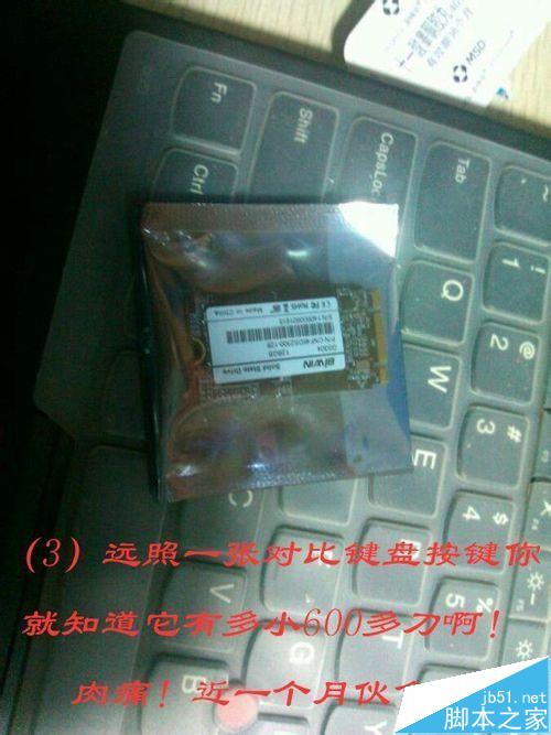 3、近照一张,蹩激动蹩激动蹩激动啊!!!放在键盘上看看NGFF到底有多小。