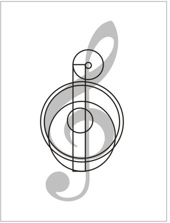 然后以几何图形的方式,描绘出心中的图像,将音符抽象简洁化。就是一个大圆,一个小圆,一个尾巴。