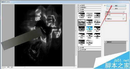 第五步,在弹出来的描边对话框中,喷色描边的的参数设置为描边长度20,喷色半径18,描边方向选择右对角线的形式,在左边可以预料图像处理效果,如果觉得效果不够好的话可以多吃调整数值,直到你满意为止。