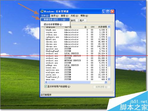 6、这样桌面不见了,现在点击任务管理器上的文件-新建任务。
