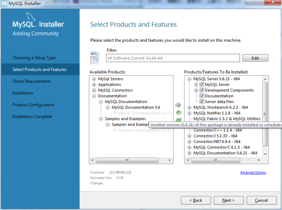 2、选择好需要安装的产品加到右侧(点击剪头)