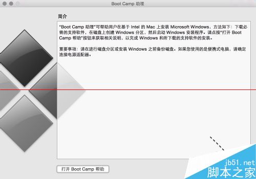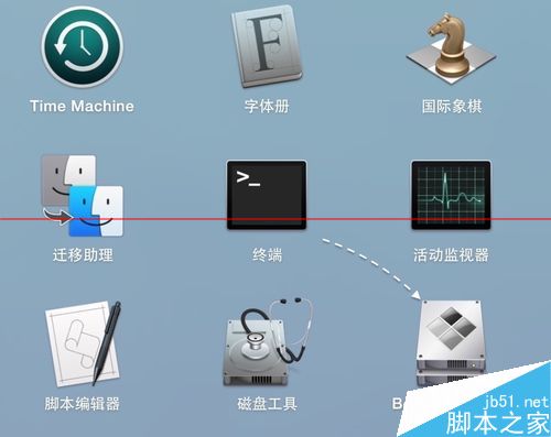 1、首先请将 U 盘插入 Mac 的 USB 端口,在 Mac 系统中打开 BootCamp 工具,如图所示
