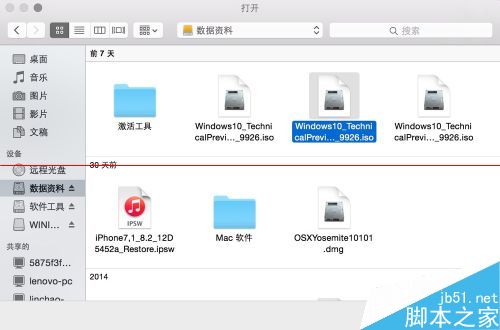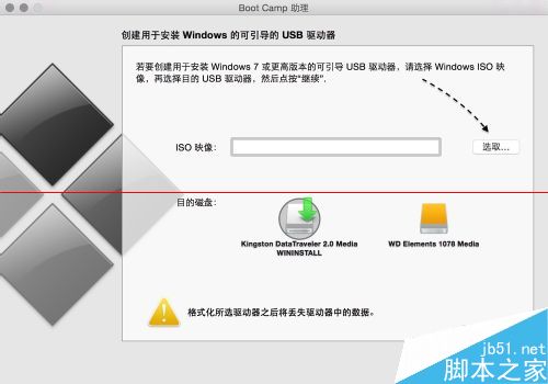 4、接着在这里可以看到我们当前插入到 Mac 的 U 盘,在 ISO 镜像一栏,点击“选取”按钮,如图所示