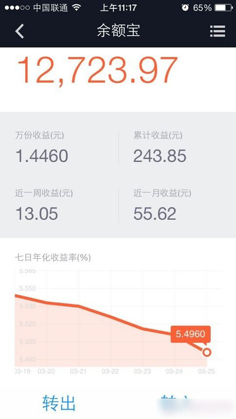 支付宝的余额宝最近七日年化收益率为已不到5.5%