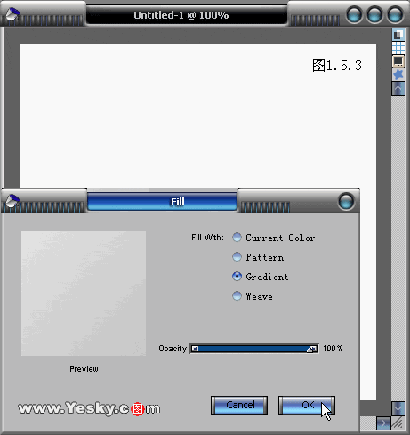 3.【CTRL+F】打开【Fill】(填充)的对话框,选择【Gradlients】(渐变),按OK按钮确定。(图1.5.3所示)