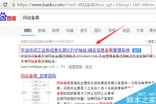 1、打一个浏览器的,然后在浏览器中输入百度搜索的网址,进行搜索“网站备案”,即可搜索到备案的链接官网。