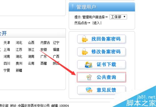 2、进入到备案国家的信息部的网站,在网站的右下角的位置中,管理用户选项,然后进行点击“公共查询”的选项。