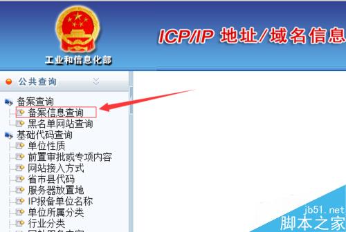 3、进入到备案信息查询的界面,然后在左侧的位置中的公共查询,进行点击“备案信息查询”进入。