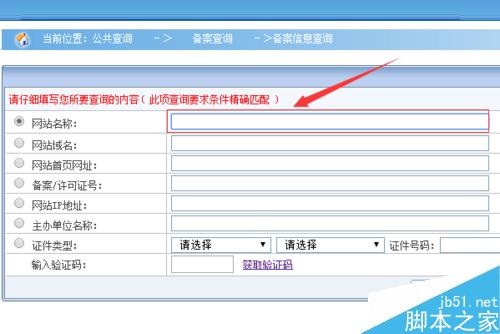 4、然后在输入框中需要输入要查询网站的内容,例如要查询“百度一下”,在进行验证码信息,然后进行提交。