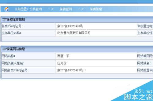 6、这样就可以查看到具体的备案的信息,即网负责人的名字信息,公司的名称等更多的信息。