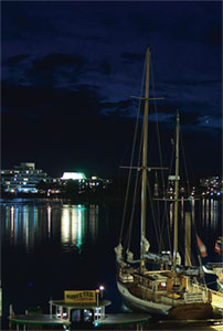 这是一张匆忙拍摄的海港照片。可惜水平方向上没有什么视觉中心,许多高光和琐碎的元素让画面杂乱无章,我们看不到重要的或说有趣的点在哪。