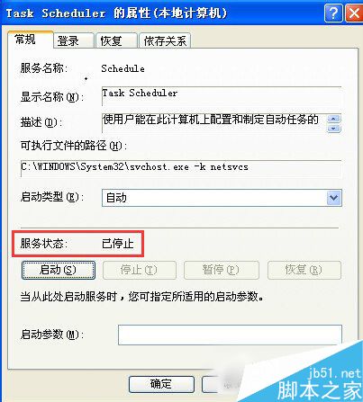 3、在服务对话框中找到名称为Task Scheduler的计划任务服务,双击该服务,出现计划任务服务的对话框,如图所示: