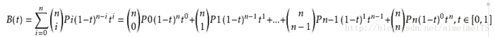 这个公式中的P0-Pn代表了从起点到各个控制点再到终点的各点与占比t的各种幂运算。