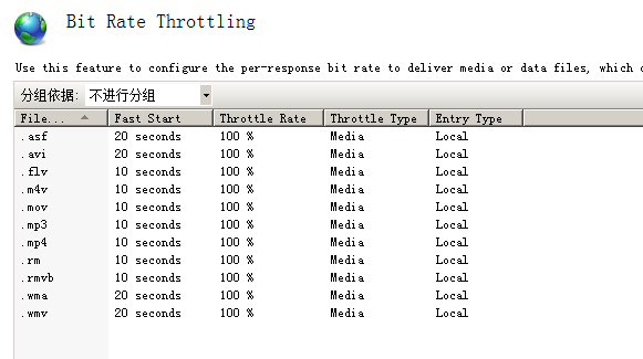 安装完成后,可以在IIS管理工具里点击“Bit Rate Throttling”节点。