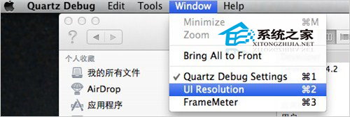 打开Quartz Debug顶部工具栏的Windows菜单下的UI Resolution功能,在弹出的对话框中,打开“Enable HiDPI display modes”模式。