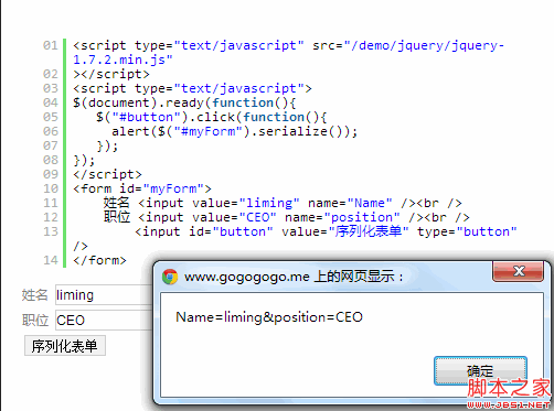 以上就是贪玩战斗机最近收集整理的关于jQuery ajax中使用serialize()方法提交表单数据示例的全部内容,更多相关jQuery内容请搜索靠谱客的其他文章。