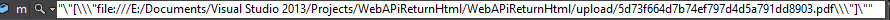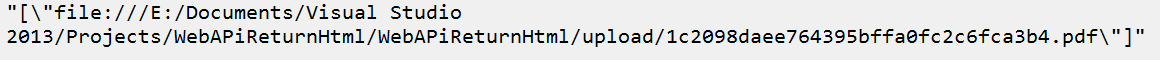 return Request.CreateResponse(HttpStatusCode.Created, JsonConvert.SerializeObject(savedFilePath));