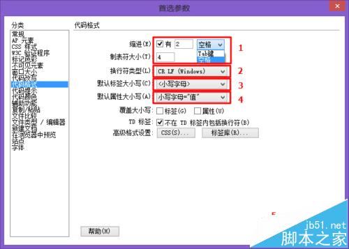1)缩进:有“空格”和“Tab键”两种选项,这里我设置为2个空格;