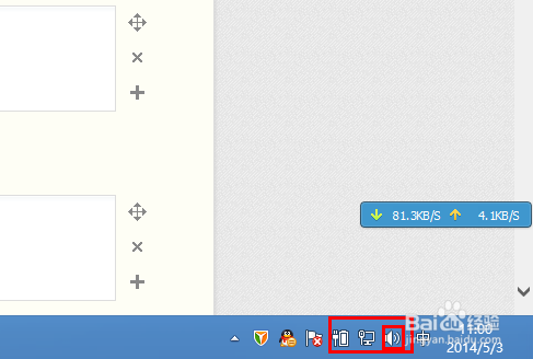 1、当你开启了多个应用程序,并且多个应用程序都有声音时,我们来关闭某个程序的声音。首先看到右下角,电源管理,网络连接图标,声音图标那里。