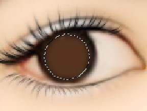 接下来就是眼珠了:由于主角的黑眼珠比较完整,所以我直接画虹膜了。用圆形工具画一个圆形,羽化3个像素,填充棕色(按个人喜好,你喜欢什么颜色就填充什么颜色,个人比较喜欢棕色)