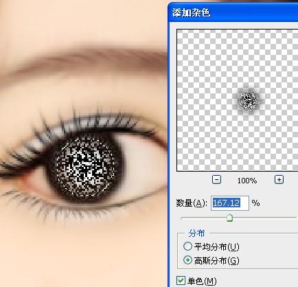 然后,选择,滤镜→杂色→添加杂色,参数如下: